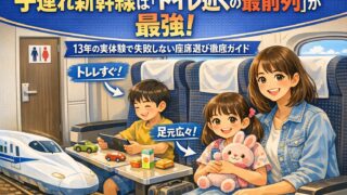 こんにちは。旅するママです。子連れで新幹線に乗るとき、「どの席を選べばラクなの?」「予約ってどうすればいいの?」と悩む方は多いのではないでしょうか。私自身、13年の育児と並行して、30年の推し活、ライブ参戦100公演超を楽しみ、母娘遠征経験...